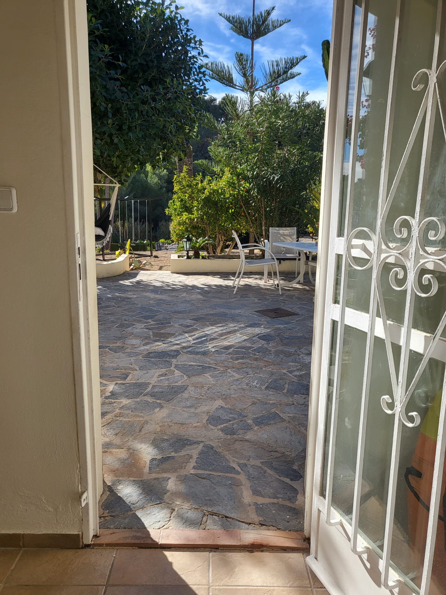 ¡TODO USO DEL INTERIOR Y EXTERIOR DE LA VILLA ES BAJO SU PROPIO RIESGO! APÉNDICE IMPORTANTE PARA USUARIOS DE SILLAS DE RUEDAS: Para llegar a la propiedad hay que subir por un camino empinado de aproximadamente 10 m de largo. ¡El usuario de silla de ruedas necesita ayuda para ello! Este camino de entrada no es adecuado para que los usuarios de sillas de ruedas naveguen solos. La villa, como casi todas las villas de la Costa Blanca, está situada en una pendiente. Compré dos nuevas rampas temporales antideslizantes para sillas de ruedas para las dos mini escaleras (2 escalones y 1 escalón). Solo se puede acceder al parque infantil a través de una entrada empinada. Los usuarios de sillas de ruedas necesitan ayuda. Así mismo el nivel donde se ubica la mesa mecedora: Esto se puede lograr mediante dos pasos. También están los árboles frutales, el banco del beso y el placer y el gallinero. Lamentablemente, debido a la construcción, el ancho de la silla de ruedas en la villa solo es posible hasta 74 cm. Es posible pedirme prestada una silla de ruedas más estrecha y liviana para uso residencial y al aire libre. Todos entran, salen, atraviesan, van, vienen y regresan. ¡Toda la sala de estar, el exterior y la piscina están en un solo nivel sin escalones! La superficie a la que se puede acceder en silla de ruedas sin restricciones es de aproximadamente 450m².